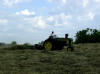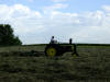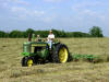 What a great summer activity...tedding hay with the 1957 John Deere 720 gasoline tractor. It was a beautiful early June day in 2008! It's hard to tell but this is some of the thickest hay dad has ever seen (135+ square bales/acre). |